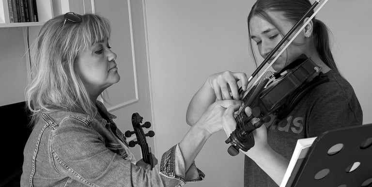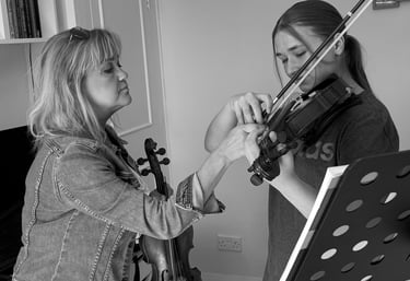 Personalised music lessons for violin, vocal training, piano and music theory, nurturing creativity and musicality in students.